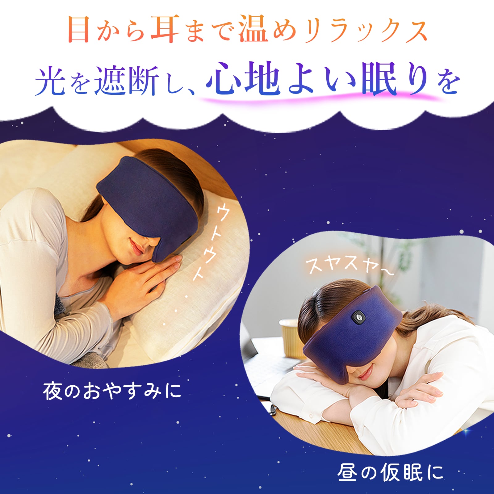 ミミネル 耳まで温まるホットアイマスク 寝ながら使える睡眠用 コードレス充電式 コットン素材 洗って繰り返し使える【電池改良版】